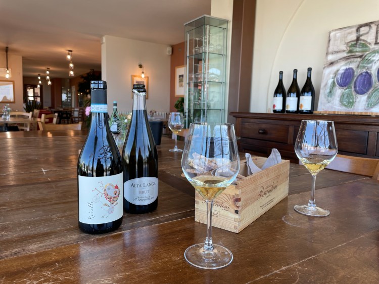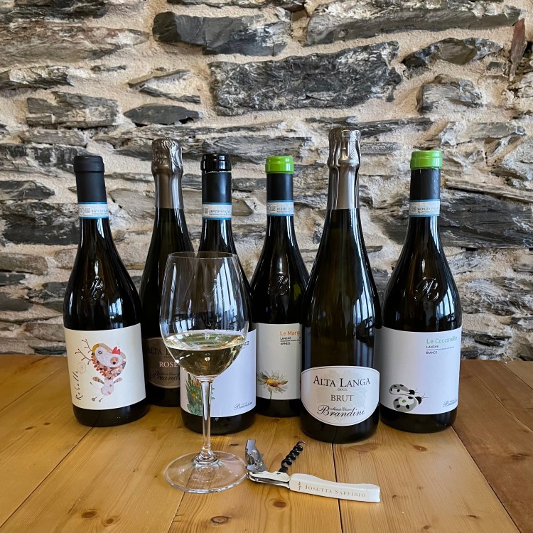 Visto che siamo solo all’inizio della nostra nuova attività abbiamo deciso di avere una carta con un numero limitato di vini: pochi ma buoni! Di Brandini avremo sulla carta il bianco „Le Coccinelle“ del 2019 che è 85% di vitigno Arneis e 15% di Viognier. Un blend eccezionale, „di profumo intenso, avvolgente con note di frutta tropicale e sentori di erbe aromatiche“. Un bel giallo paglierino nel bicchiere, con un leggero verdastro, tipico per l’Arneis. E il brut che vedete nella foto. È del 2018 e fatto di 85% Pinot nero e 15% Chardonnay, buonissimo! Entra nella gamma dell’azienda Brandini solo da pochi anni ed è già un successo. Lo descrivono così: „Sentori di crosta di pane perfettamente amalgamati con note floreali e sentori di frutta candita“.