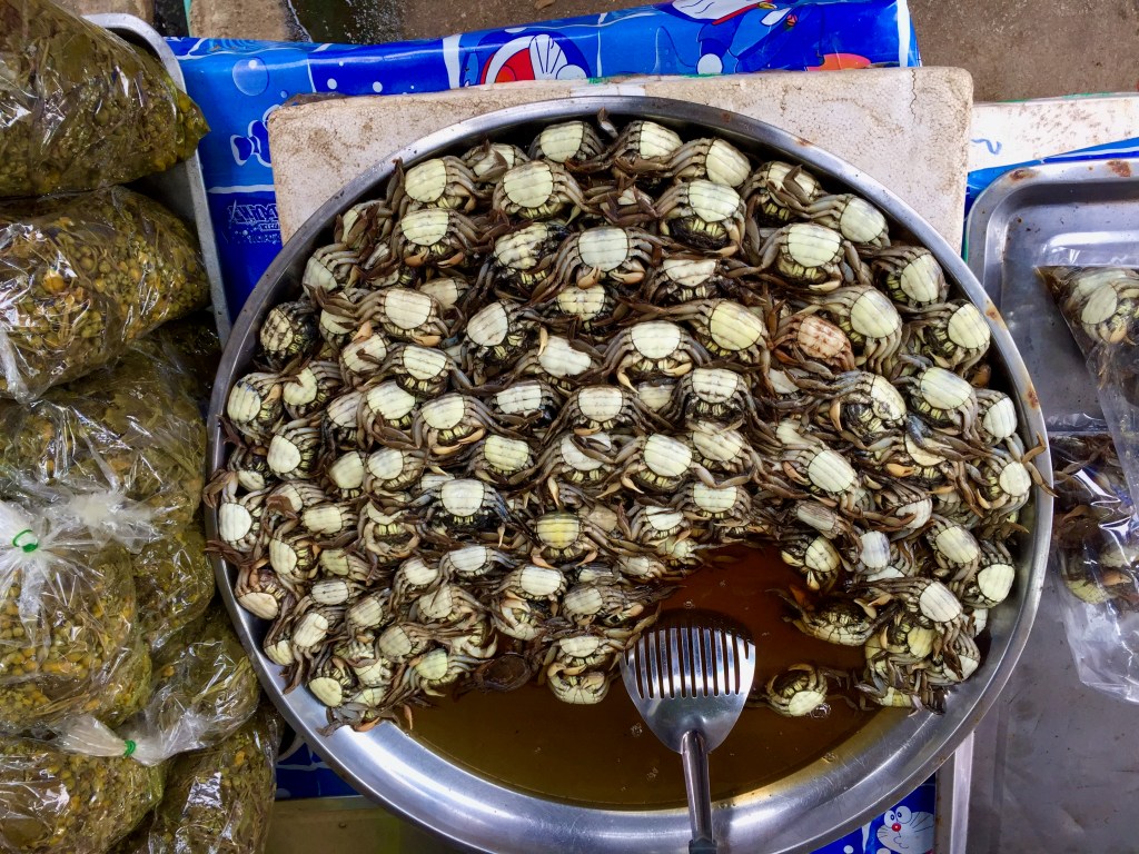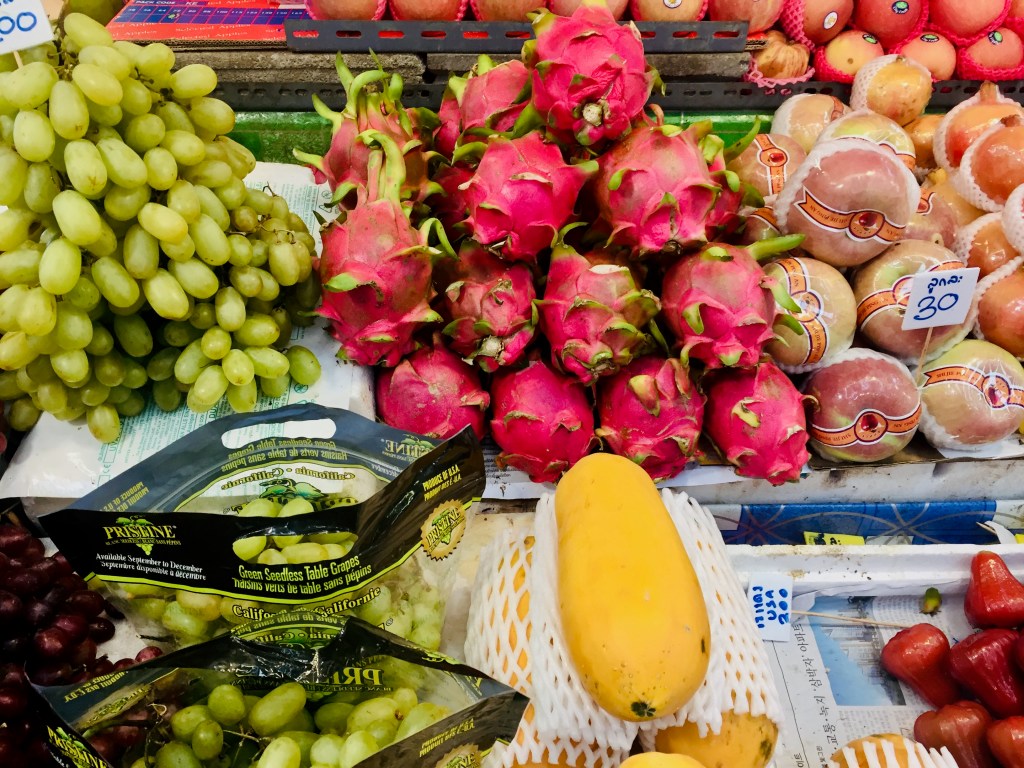 I mercati di Bangkok sono veri e propri parchi a tema per via di tutti i cibi freschi. Dalle bancarelle pendono animali interi, le spezie brillano in tutti i colori, ci sono più tipi di frutta e noci di quanti se ne possano ricordare. La freschezza è una questione d’onore: il latte di cocco viene prodotto direttamente dalla frutta, i polli vengono portati in carriola dal macellaio dietro l’angolo. Le materie prime crescono appena fuori Bangkok: la regione intorno alla città universitaria di Nakhon Pathom è considerata l’orto del Paese. Il mare, i fiumi e i laghi portano pesce fresco di tutti i tipi. Solo lentamente l’idea del biologico e della sostenibilità sta prendendo piede anche qui ma i primi mercati stanno rendendo trasparenti l’origine e la coltivazione.